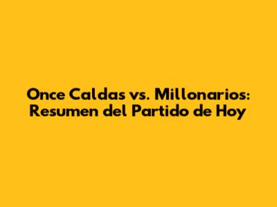 Hey guys! So, you're here because you want the lowdown on the Once Caldas versus Millonarios match, right? Well, you've come to the right place! We're diving deep into the resumen of the game, breaking down everything from the key plays to the final score. We'll explore the highlights, the turning points, and the overall performance of both teams. Whether you're a die-hard fan or just curious about the outcome, this is your one-stop shop for all things Once Caldas vs. Millonarios today. Buckle up, because we're about to recap an epic showdown!